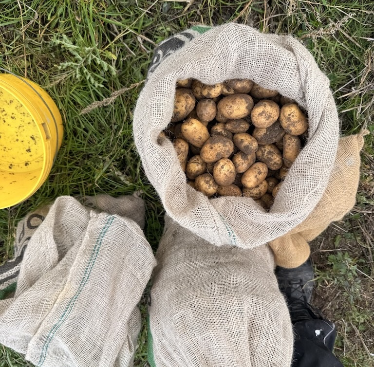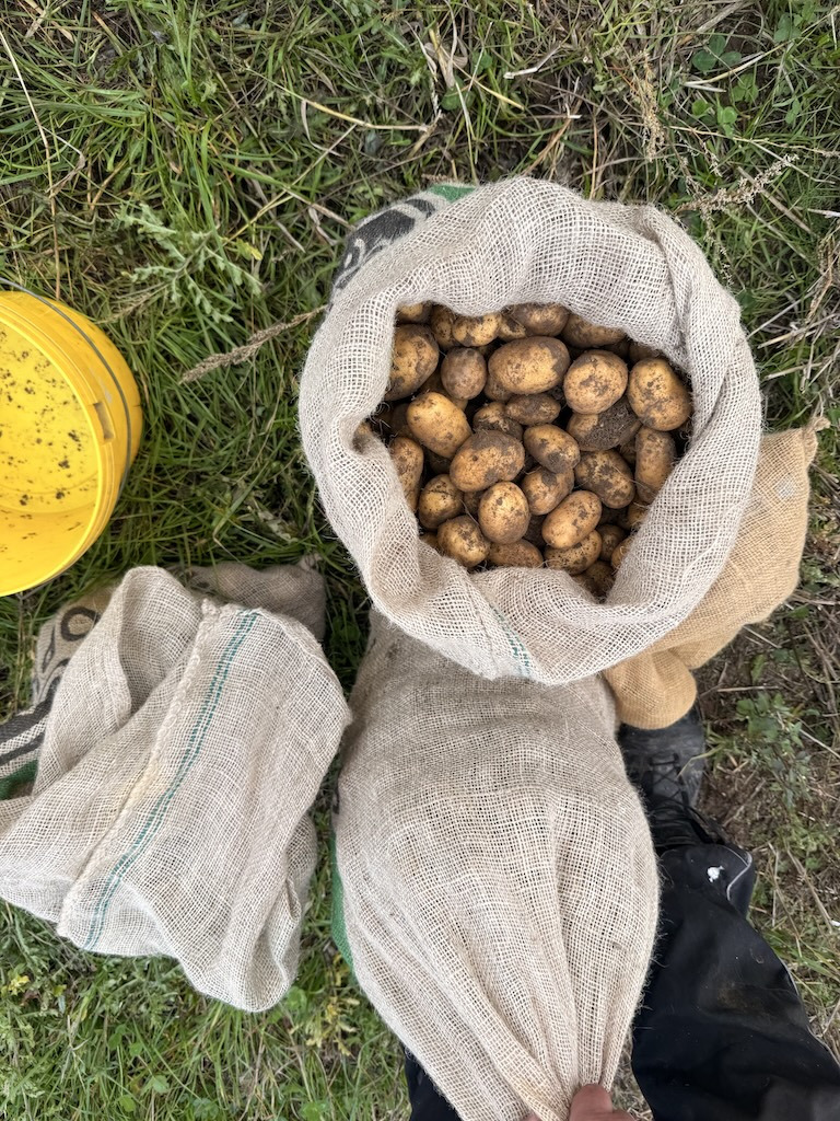 Hautnah durften die Schülerinnen und Schüler der dritten Klassen die Petterweiler Landwirtschaft einmal miterleben und mitgestalten. Bereits im Frühling 2025 hatten die damaligen Zweitklässlerinnen und Zweitklässler auf dem Feld von Bauer Morfeld unter seiner Anleitung und Unterstützung Kartoffelknollen in die Erde gesteckt. Nach einem teilweise sehr heißen und auch regnerischen Sommer war es dann soweit - die Ernte stand Ende September an. Zunächst erklärte Bauer Morfeld den Kindern den Ablauf. Mithilfe des Kartoffelroders wurden die Kartoffeln aus der Erde geschleudert und anschließend von den Schülerinnen und Schülern händisch aufgesammelt. Die Kinder waren beeindruckt von der Vielzahl an gewachsenen Kartoffeln und sammelten alle motiviert ein. Drei Säcke konnten die beiden Klassen füllen. Neben dem Sonnenschein und Ernteerfolg setzte das zubereitete Frühstück durch die Petterweiler Landfrauen, welches die Kinder nach der Ernte auf dem Feld genießen durften, dem Ausflug die Krone auf. Es war ein voller Erfolg und ein Erlebnis, das den Kindern sicherlich in Erinnerung bleiben wird.